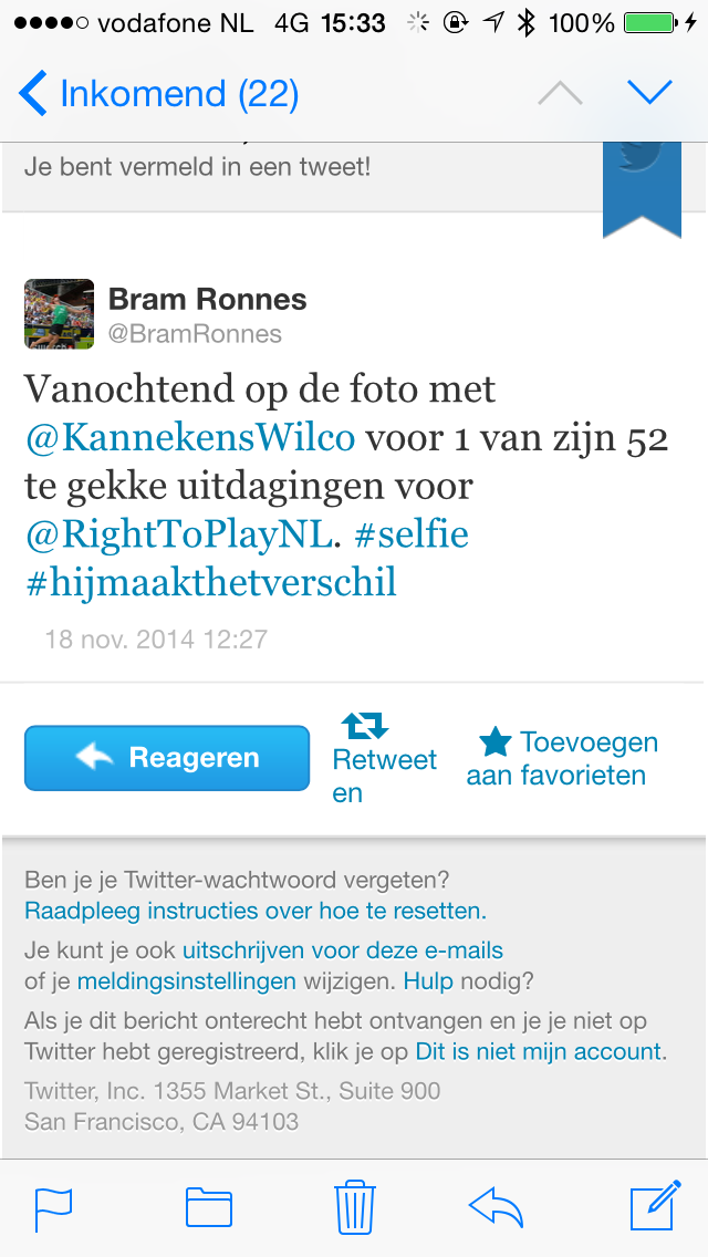 Om niet veel te laat thuis te komen, besluit ik de laatste lus van mijn tocht niet te maken. Daarmee haal ik de 150 km niet en kom ik uit op 143 km fietsen. Ach uiteindelijk is het toch een topdag, zeker als Anouk van Right To Play tijdens de laatste kilometers nog belt om te bedanken voor het bloemetje dat ik maandag heb laten bezorgen.