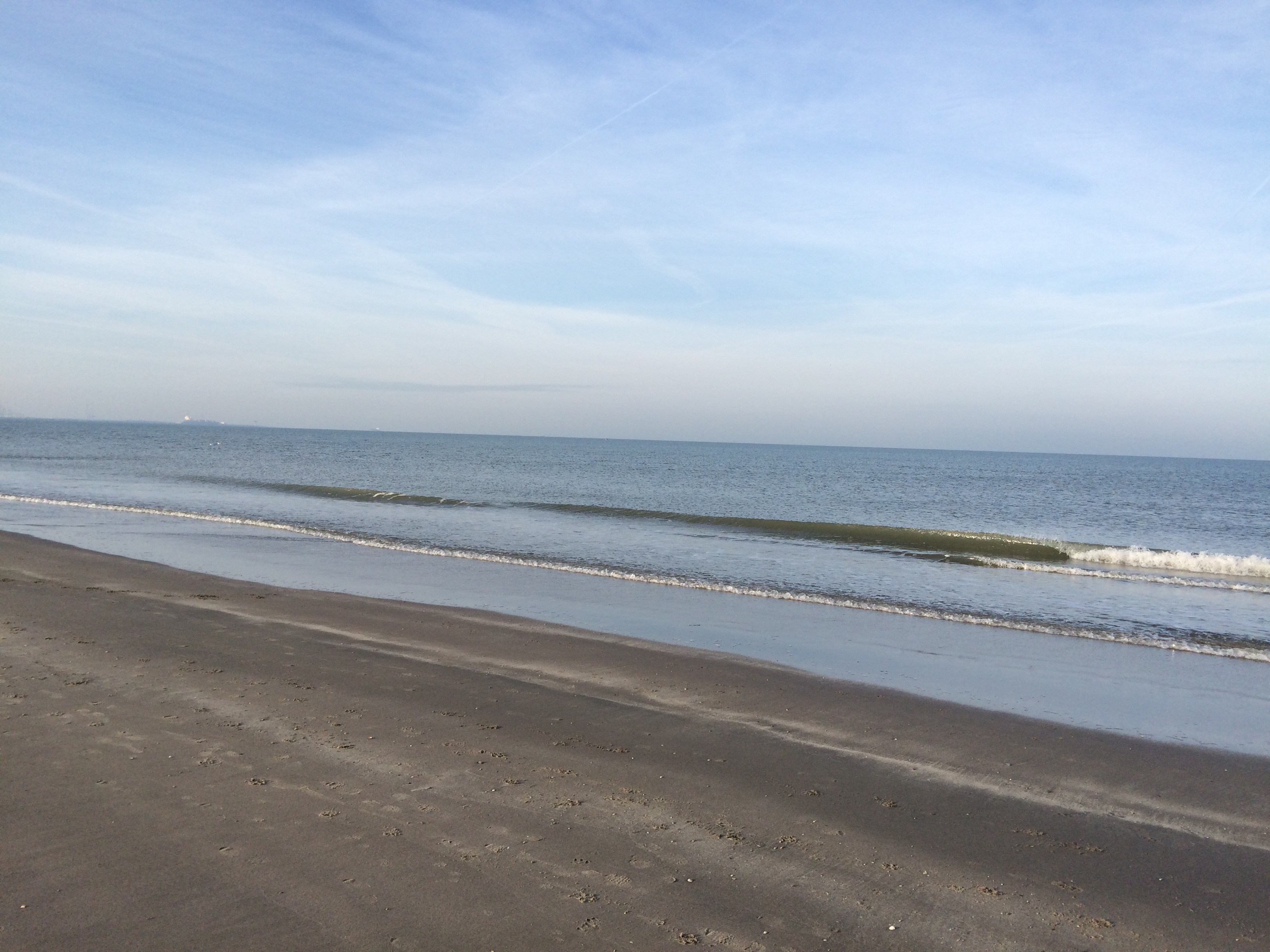 Dat betekent dat ik vanaf nu ook elke week probeer een training te doen op het strand. Vanmorgen stond de eerste tocht op het programma, dus op naar Hoek van Holland. Rechtsaf slaan bij vishandel ‘De eerste de beste’ en daar de parkeerplaats op. Dat hoef je in de zomer trouwens niet proberen, maar nu was er volop plaats. De warming up in de duinen verliep voorspoedig. Natuurlijk voelde ik mijn kuit en achillespees wel, maar na stevig stretchen, durfde ik het strand op. Met de laag staande zon, die heerlijk scheen, was het verleidelijk om niet regelrecht het water in te lopen, maar ik kon me beheersen.