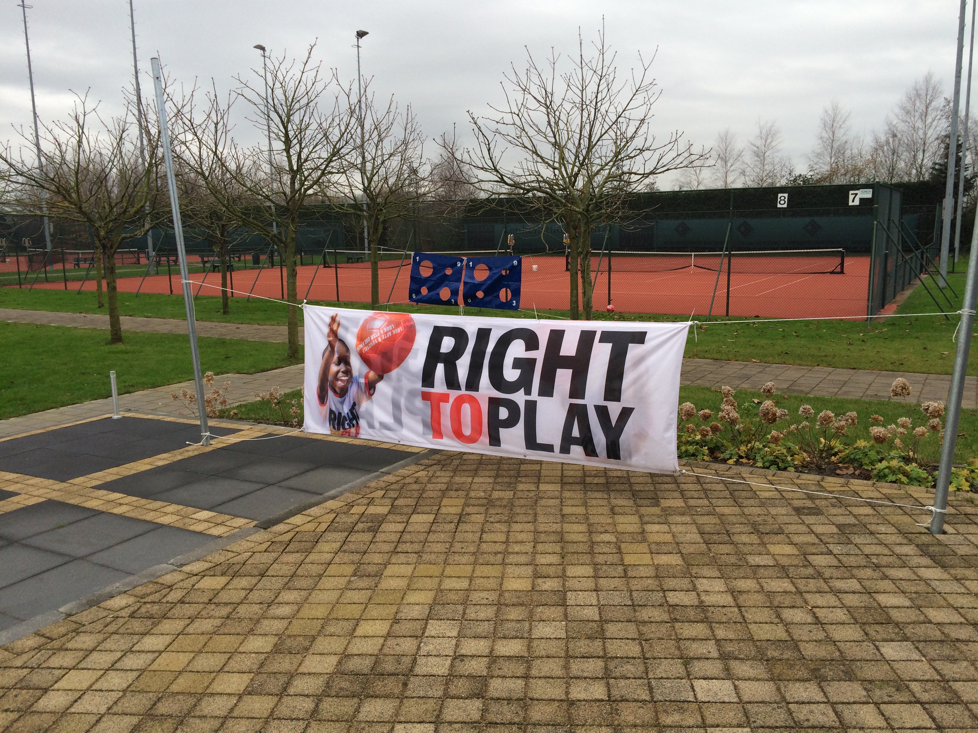 Dus toen men bij Right To Play deze week op het allerlaatste moment op zoek was naar een vrijwilliger, om een stand te bemannen bij een tennistoernooi in Bergschenhoek, zei ik direct “ja”. Ik verheugde me op de sfeer van een indoor ‘december toernooi’ en stelde me een leuk sportcentrum voor, waar de kerstboom al opgetuigd was en sfeervolle kerstmuziek werd gedraaid. Jullie begrijpen dat ik minder blij verrast was, toen ik (zoals gebruikelijk veel te vroeg) aankwam bij een outdoor tennisclub, met gravelbanen aan de rand van een weinig pittoreske industriegebied.