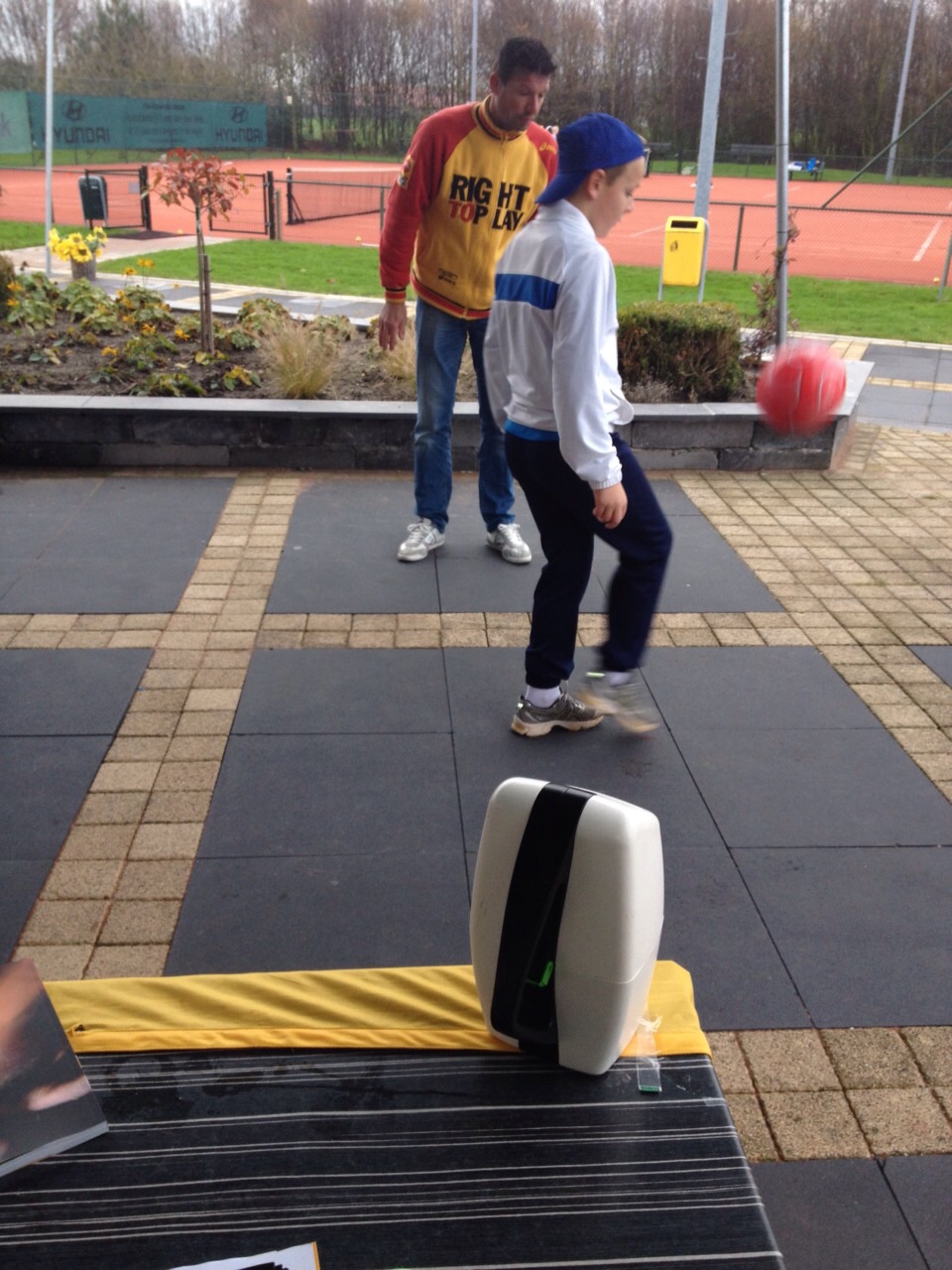 Om tien uur begon het toernooi en het was een drukte van jewelste … op de banen. Na de wedstrijden dook iedereen meteen de kantine in om daar aan de warme chocolademelk met slagroom, erwtensoep, broodjes knak (voor het goede doel) of gluhwein te gaan. En wie stonden er buiten … Juist twee enthousiaste vrijwilligers voor Right To Play. Gelukkig waaide er geregeld wat van onze tafels af, zodat we warm konden blijven door achter onze spullen aan te rennen.