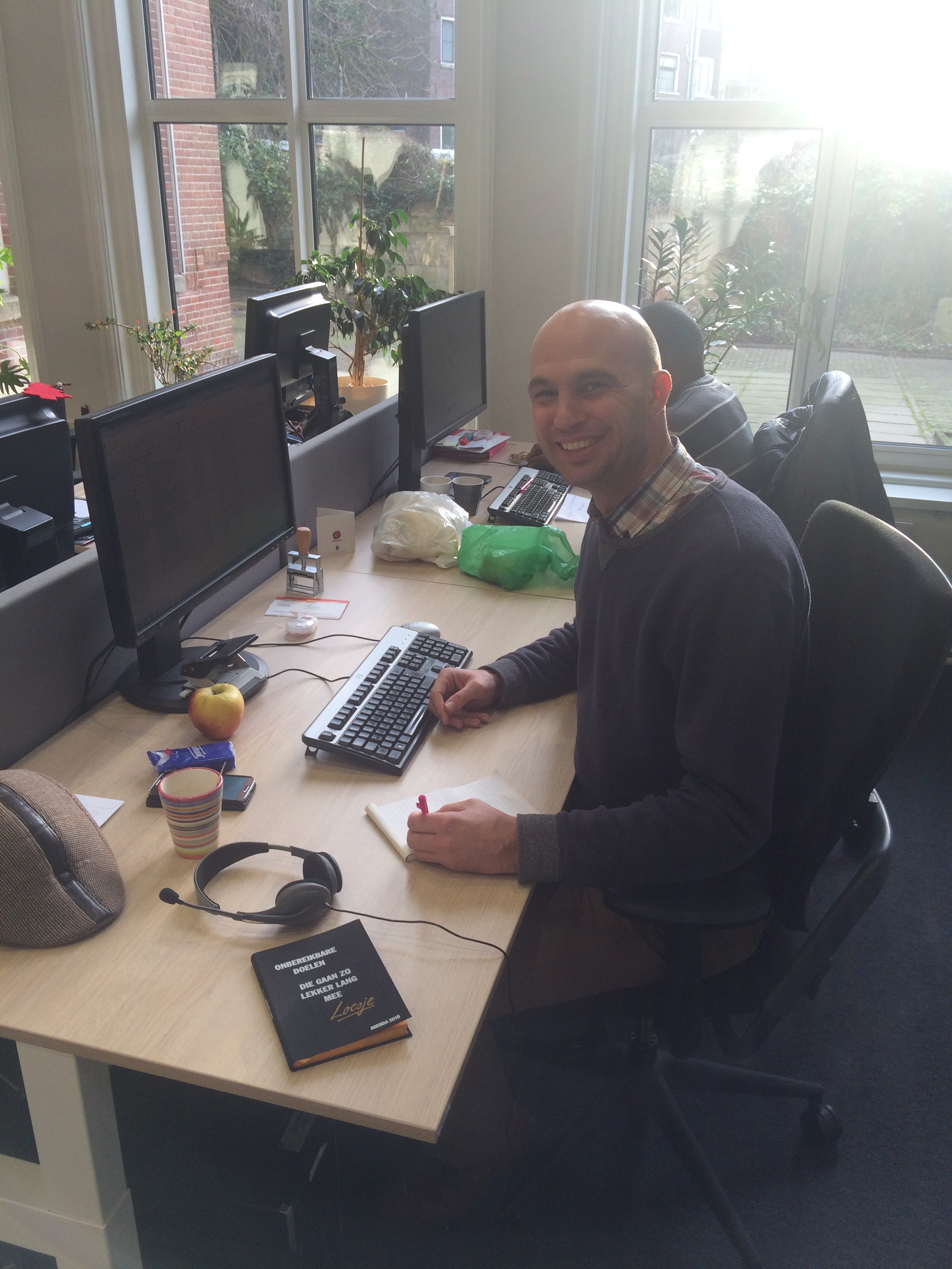 Natuurlijk vergat ik niet waarvoor ik kwam en overhandigde Tijs de Loesje agenda, die hij op zijn beurt gaat verloten onder de vrijwilligers van Plan Nederland. Met een iets lichtere tas en portemonnee, maar met een veel rijker gevoel stapte ik de deur uit. Ik besloot op de terugweg wel mijn navigatie app te gebruiken. Niet om me de kortste weg naar het Centraal Station te wijzen, maar om met Google Earth in te zoomen op wereld achter de gevelpanden. Zoveel groen en ruimte in die verborgen wereld. Wat moet het een geweldig gevoel zijn om daar te mogen wonen en werken.