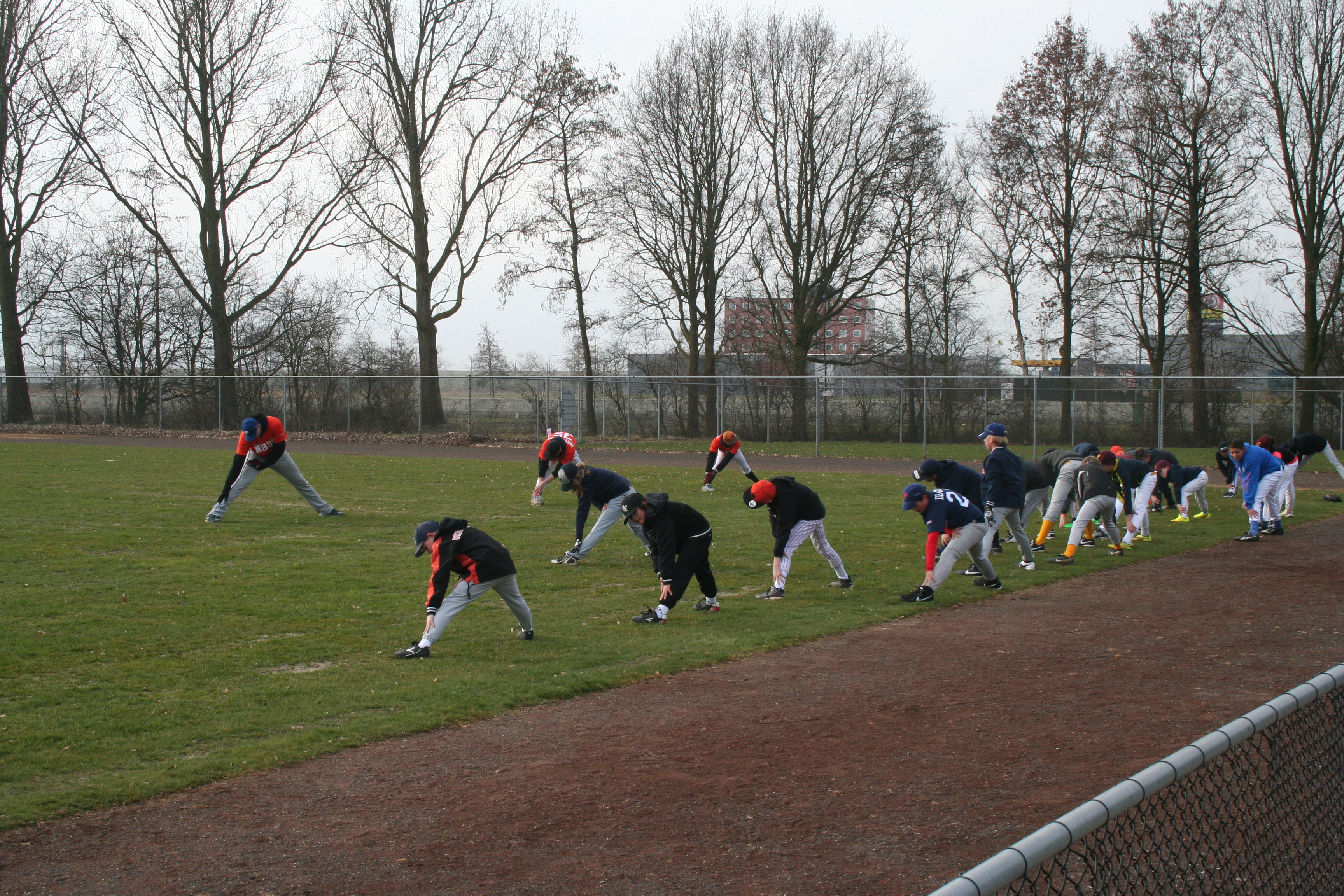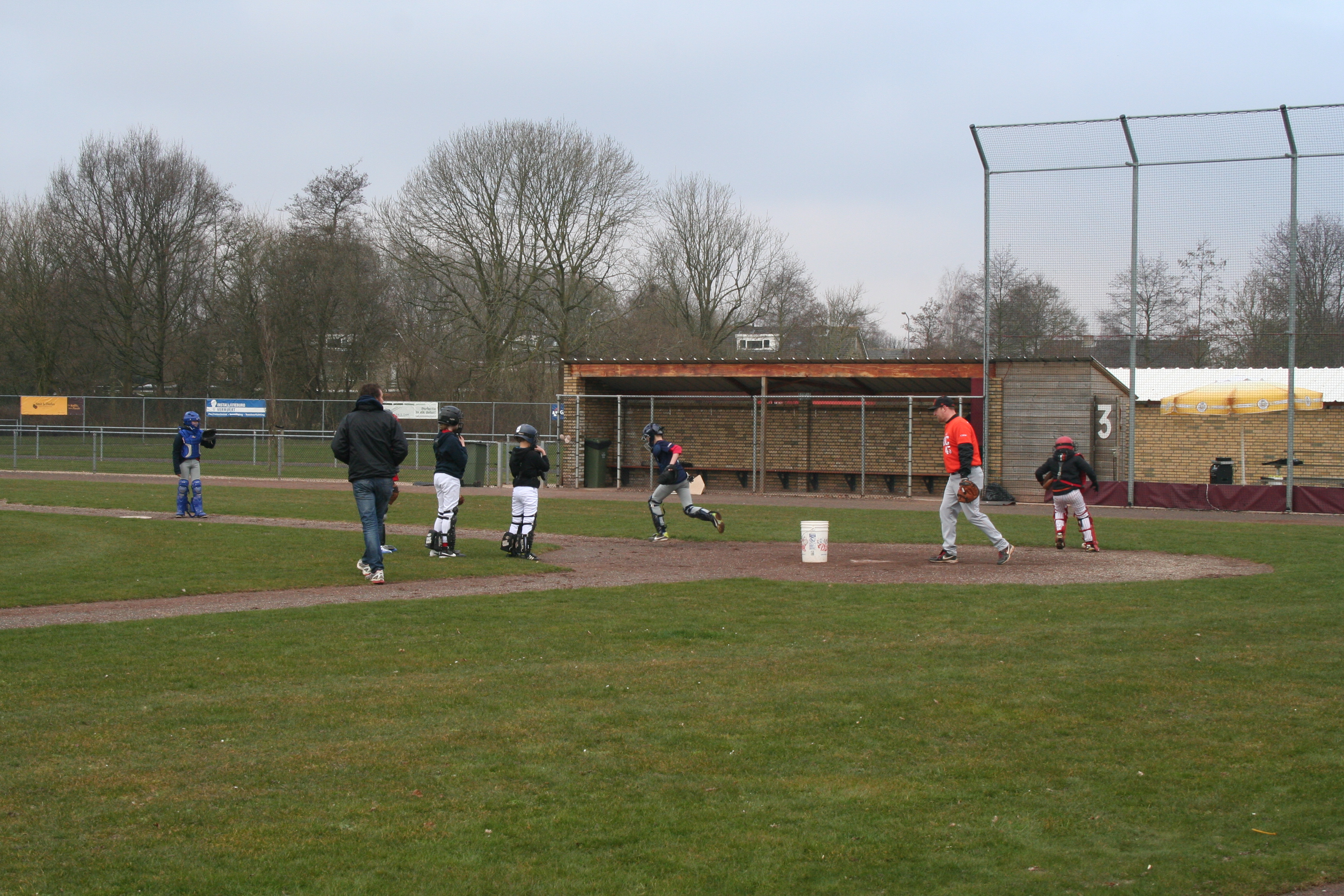 Ondertussen heeft Ed, de kantine beheerder, het clubhuis geopend en kan ik aan de slag om alles klaar te zetten. ‘De clinic is een tweedaagse’, vertelt Ed, ‘en zo’n zestig kinderen krijgen training van spelers en coaches die in de Hoofdklasse honkballen. De top van Nederland … en dus Europa!’, zegt hij met gepaste trots. Right To Play mag vandaag het goede doel promoten en natuurlijk fondsenwervende activiteiten verrichten.