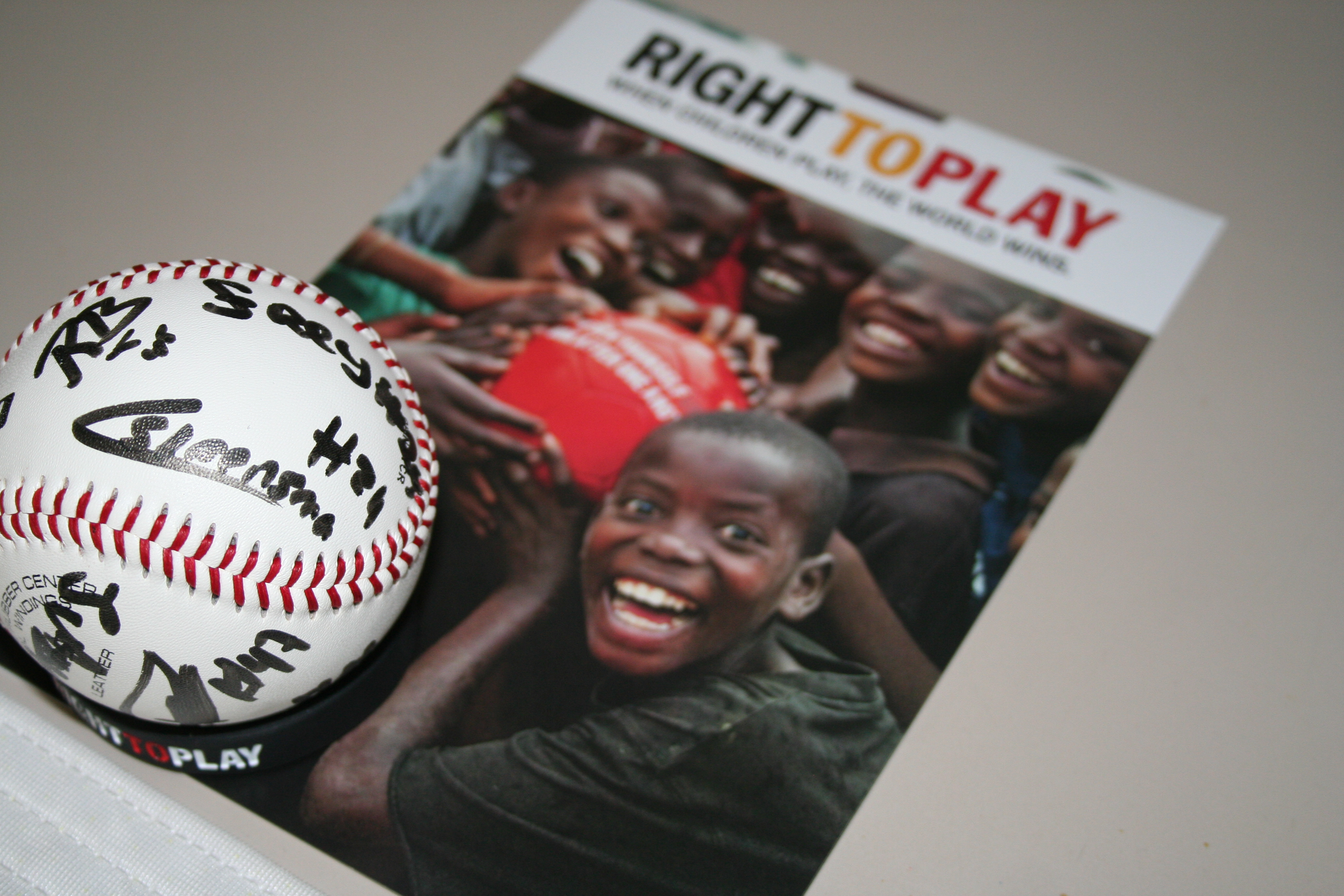 Na mijn presentatie kunnen zij hun bijdrage leveren aan Right To Play, door zich in te schrijven voor de Homerun Derby en/of mee te doen aan een loterij. Er is een alleraardigst prijzenpakket, kan ik wel zeggen. Een goed gevulde Right To Play tas, aangevuld met gesigneerde honkballen en honkbalshirts. Het is daarom niet heel moeilijk om lekker veel gegadigden te vinden voor de homerun wedstrijd.