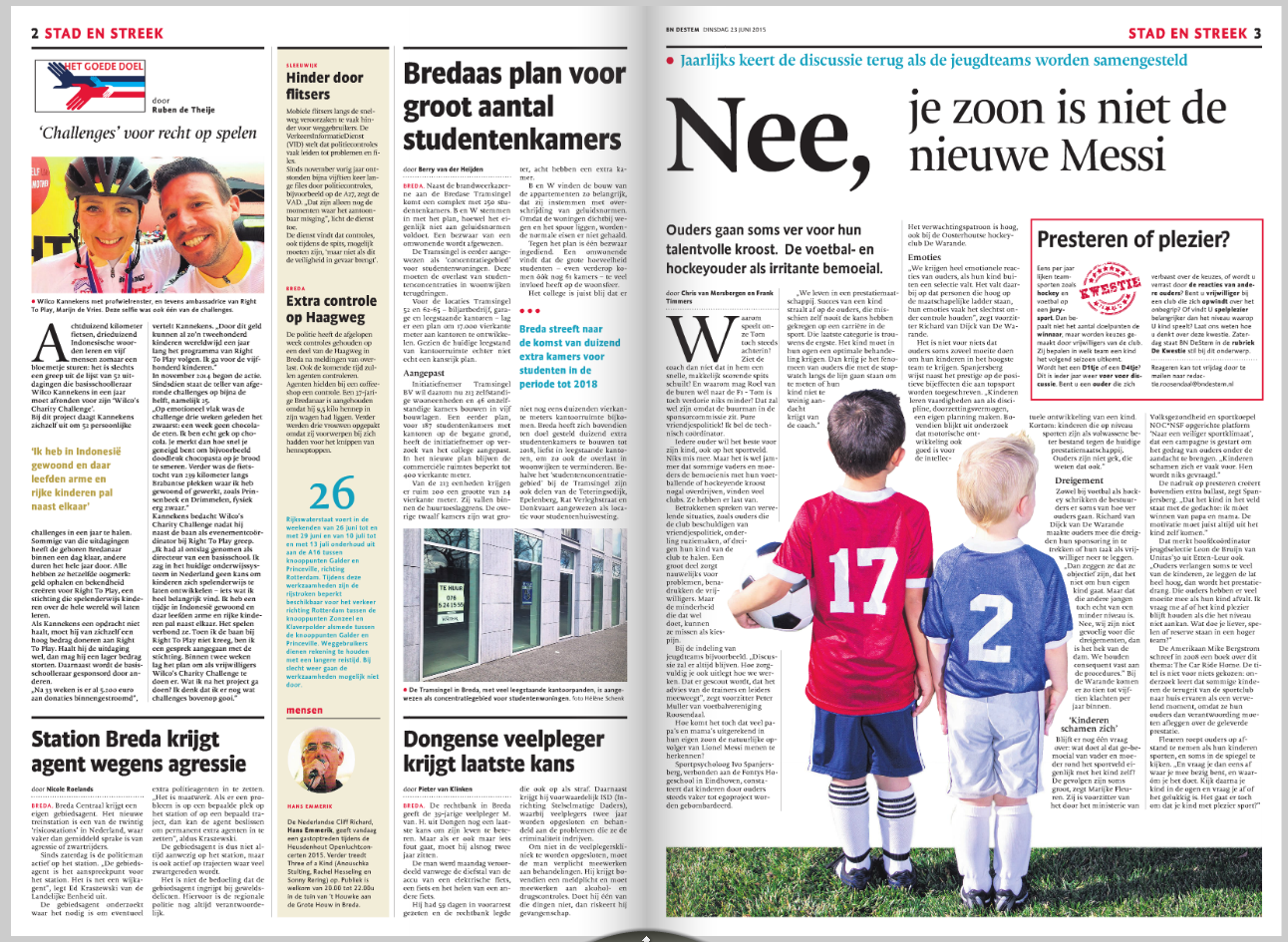 Maar goed, na dat sporten en die rapporten is het dus zondagmiddag. Terwijl we bij mijn schoonouders op bezoek zijn, gaat m’n telefoon. Ik heb mijn mobieltje eigenlijk altijd op trillen staan en omdat ik, de laatste jaren niet alleen dover, maar ook gevoellozer word, heb ik de eerste oproep gemist. Ik luister de voicemail af. Ene Ruben de Theije wil me interviewen voor BN De Stem. Wat grappig, denk ik, de krant van mijn geboortestreek. Wel een beetje vreemd dat ze op zondag bellen, maar goed in deze 24/7 maatschappij sta ik nergens meer van te kijken. Ik besluit om ze de volgende (echte werk)dag terug te bellen.