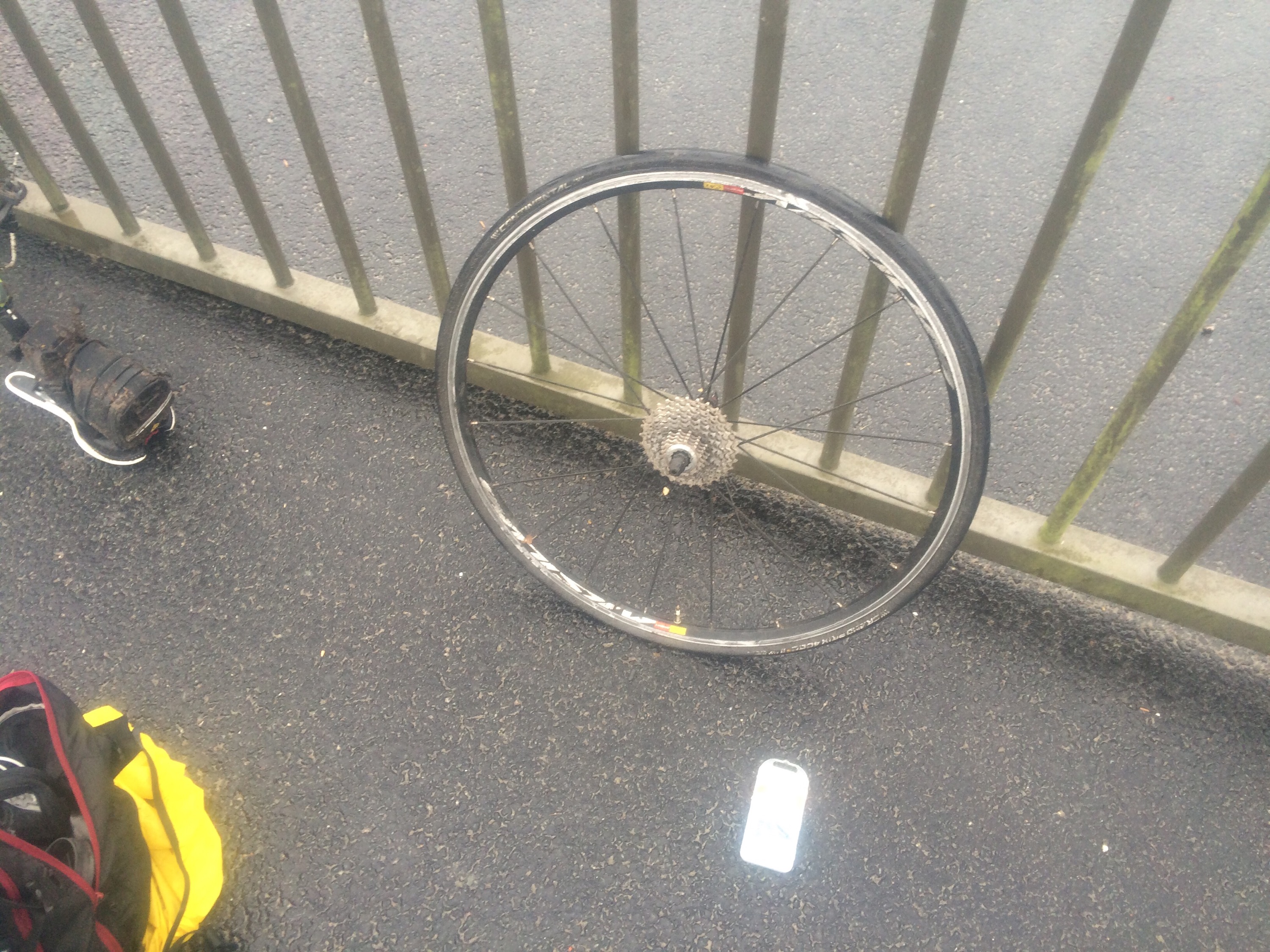 Of het allemaal lukt? Ja joh, gelukkig regent het, stel je voor dat het droog zou zijn. En ik heb tot nu toe maar één lekke band gehad en een slag in mijn achterwiel. Ik zal jullie de details over mijn zitvlak en de directe omgeving daarvan besparen!